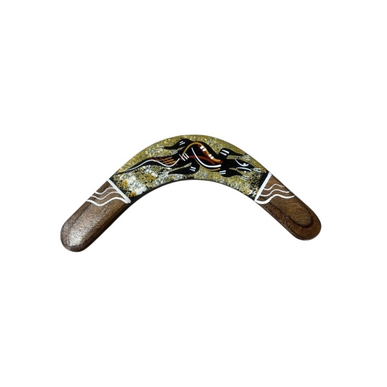 Discover the beauty and cultural significance of Indigenous art with our Hand-Painted Contemporary 12Inch (30cm) Boomerang — a unique and authentic Indigenous Australian souvenir handcrafted in Australia. These boomerangs are hand-tapered and designed to return upon correct throwing. Each boomerang features a traditional design, carefully hand-painted by our team of Indigenous Australian artists. These intricate artworks draw on cultural stories and traditional symbols, making every piece a meaningful expression of Indigenous heritage.