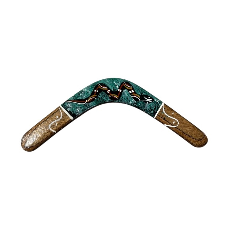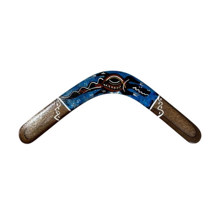 Discover the beauty and cultural significance of Indigenous art with our Hand-Painted Contemporary 14Inch (35cm) Boomerang — a unique and authentic Indigenous Australian souvenir handcrafted in Australia. These boomerangs are hand-tapered and designed to return upon correct throwing. Each boomerang features a traditional design, carefully hand-painted by our team of Indigenous Australian artists. These intricate artworks draw on cultural stories and traditional symbols, making every piece a meaningful expression of Indigenous heritage.