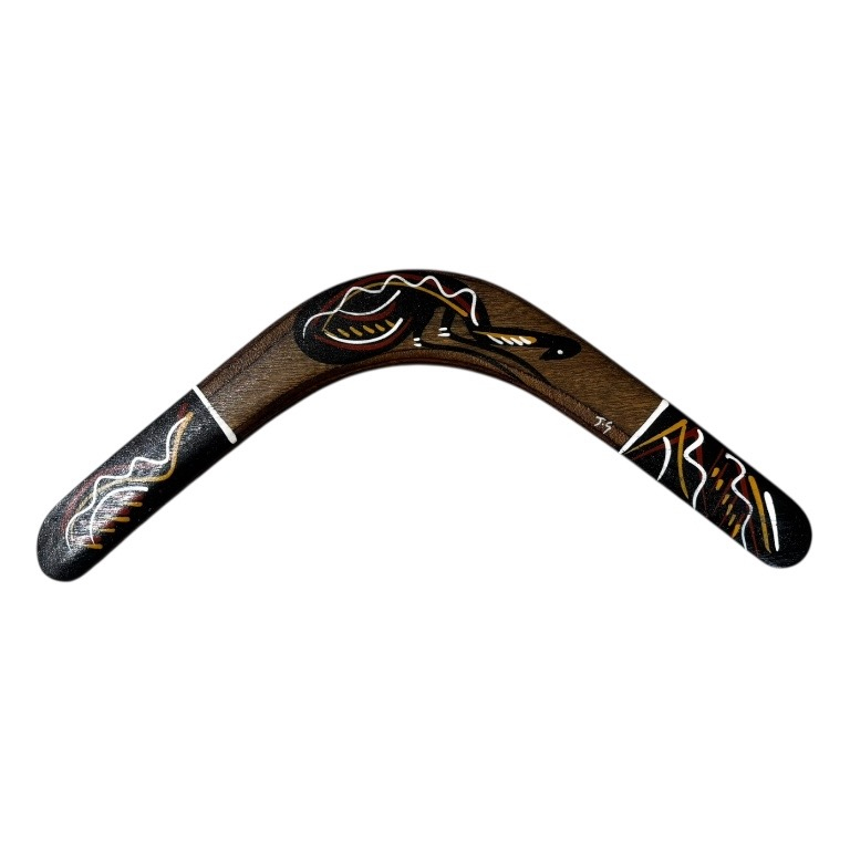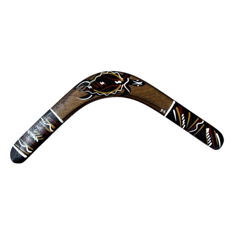 Discover the beauty and cultural significance of Indigenous art with our Hand-Painted Traditional 16Inch (40cm) Boomerang — a unique and authentic Indigenous Australian souvenir handcrafted in Australia. These boomerangs are hand-tapered and designed to return upon correct throwing. Each boomerang features a traditional design, carefully hand-painted by our team of Indigenous Australian artists. These intricate artworks draw on cultural stories and traditional symbols, making every piece a meaningful expression of Indigenous heritage.