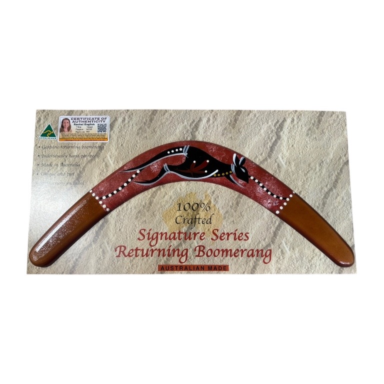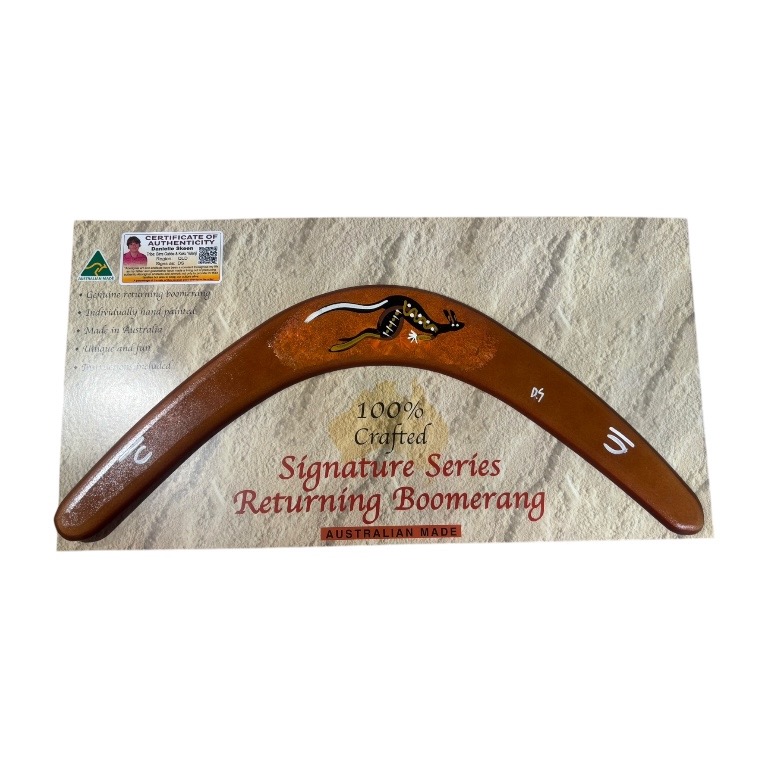 Each boomerang is individually hand-shaped and painted, ensuring no two pieces are alike. This makes every item a one-of-a-kind collectible and a unique addition to your home décor, office, or gift collection. Your purchase includes a certificate of authenticity and an information card explaining the importance of the artwork.