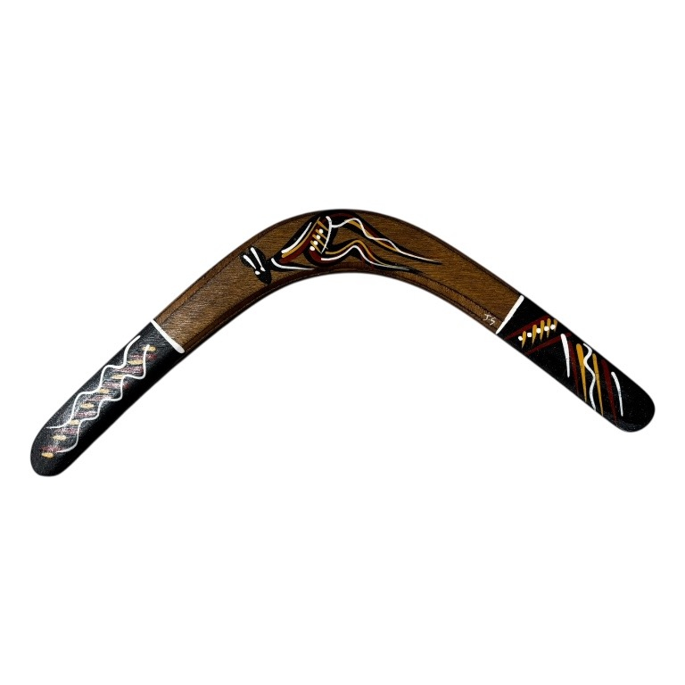 Discover the beauty and cultural significance of Indigenous art with our Hand-Painted Traditional 18Inch (45cm) Boomerang — a unique and authentic Indigenous Australian souvenir handcrafted in Australia. These boomerangs are hand-tapered and designed to return upon correct throwing. Each boomerang features a traditional design, carefully hand-painted by our team of Indigenous Australian artists. These intricate artworks draw on cultural stories and traditional symbols, making every piece a meaningful expression of Indigenous heritage.
