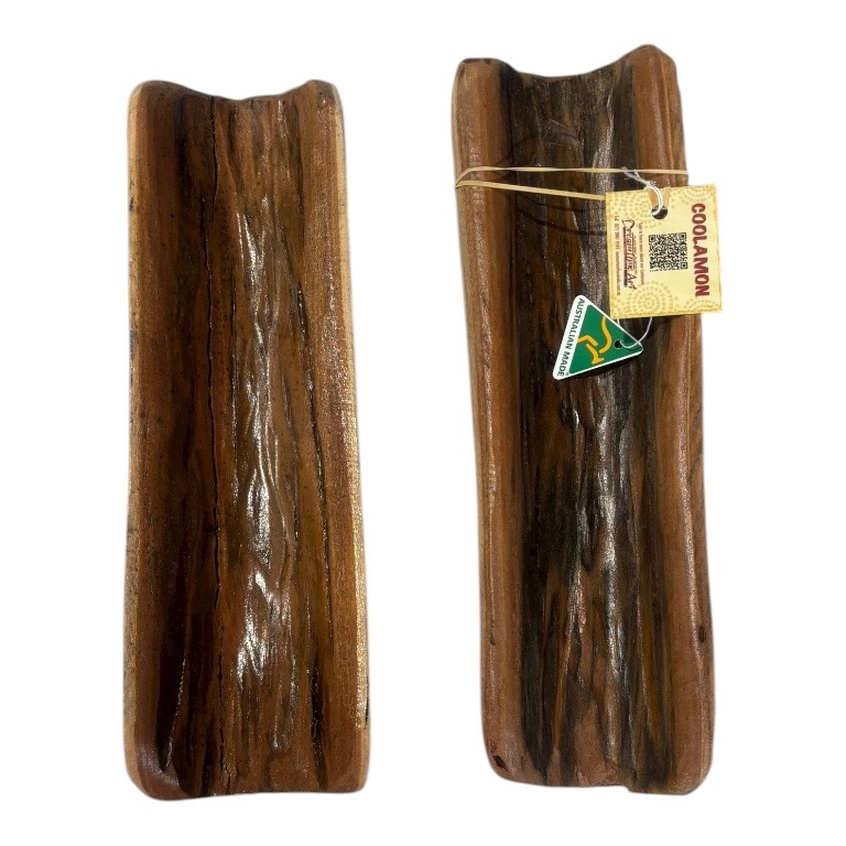 Our coolamons are expertly handmade from authentic box or grey box timber, each measuring approximately 30cm in length. These traditional Aboriginal carrying vessels have been crafted for generations and remain a powerful symbol of connection to culture and country.
