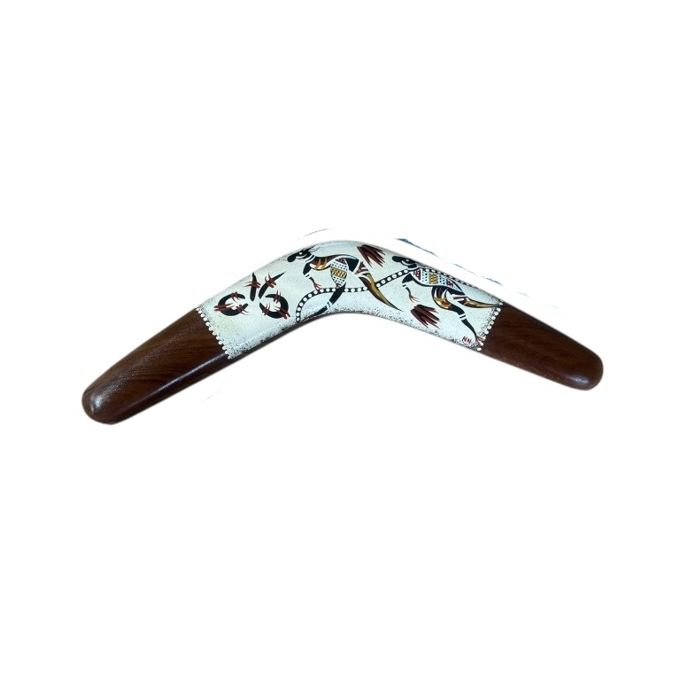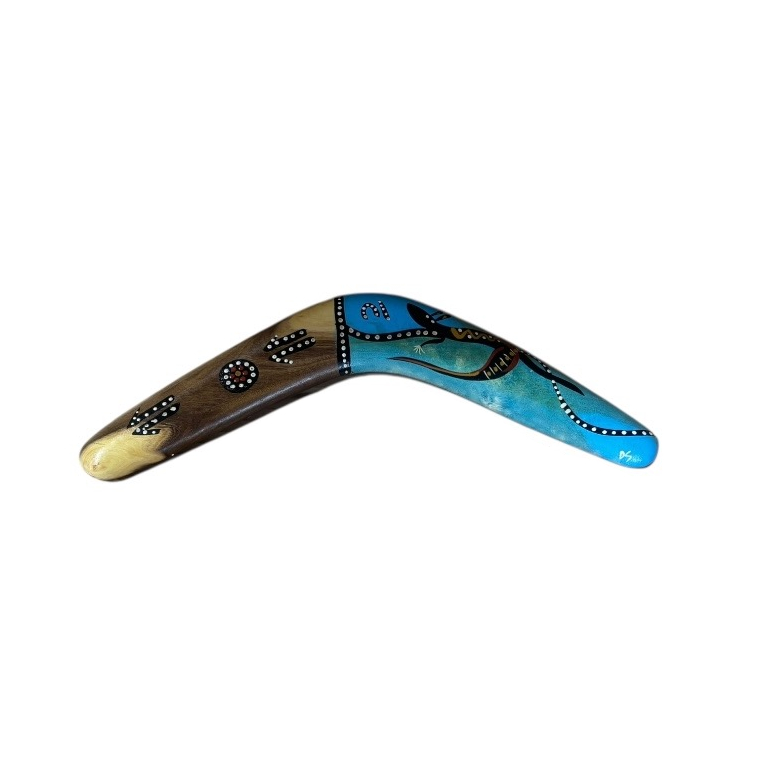Discover the beauty and cultural significance of Indigenous art with our Hand-Painted 16-Inch (40cm) Boomerang — a unique and authentic Indigenous Australian souvenir handcrafted in Australia. Each boomerang features a vibrant, contemporary animal design, carefully hand-painted by our team of Indigenous Australian artists. These intricate artworks draw on cultural stories and traditional symbols, making every piece a meaningful expression of Indigenous heritage.