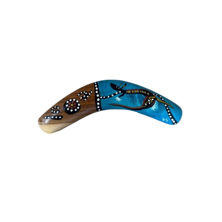 Discover the beauty and cultural significance of Indigenous art with our Hand-Painted 8-Inch (20cm) Boomerang — a unique and authentic Indigenous Australian souvenir handcrafted in Australia. Each boomerang features a vibrant, contemporary animal design, carefully hand-painted by our team of Indigenous Australian artists. These intricate artworks draw on cultural stories and traditional symbols, making every piece a meaningful expression of Indigenous heritage.