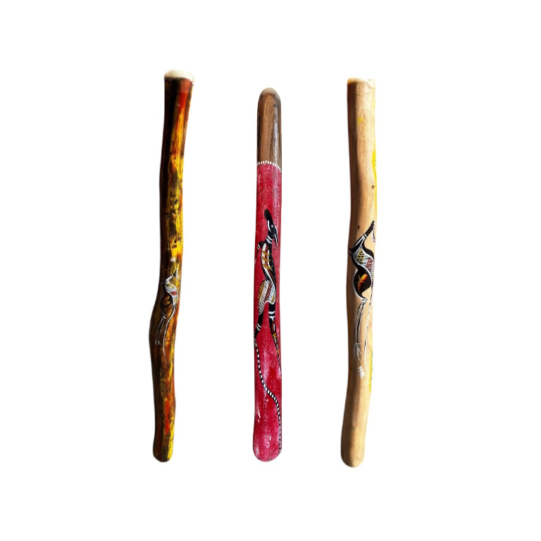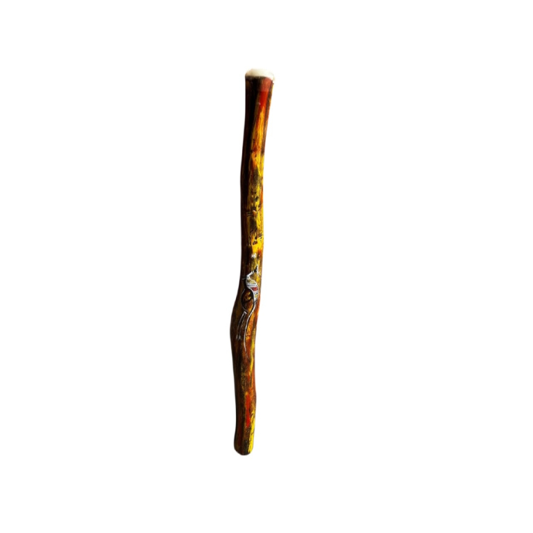 Hand painted with contemporary artwork, 95-110cm in length, our authentic didgeridoos are meticulously handcrafted from sustainably sourced Australian Box and Grey Box hardwoods — native timbers prized for their strength, natural hollowness, and rich acoustic properties. These dense, durable woods produce a deep, resonant sound with excellent backpressure and tonal clarity, making them ideal for players of all levels. Each didgeridoo comes mouthpieced and is carefully selected for its unique grain pattern and natural beauty, resulting in an instrument that performs as impressively as it looks.