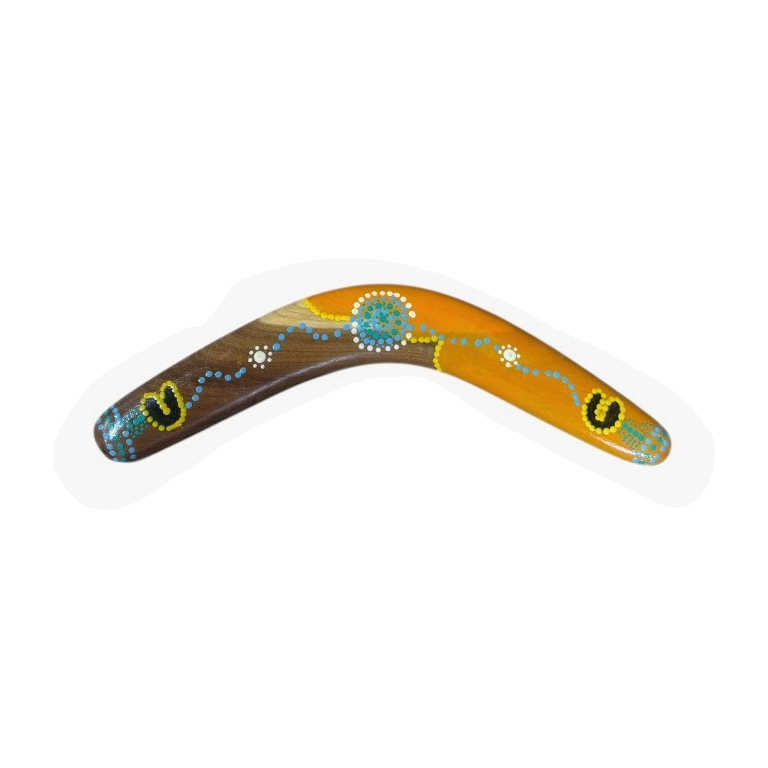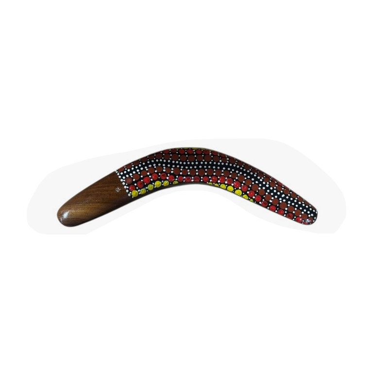 Discover the beauty and cultural significance of Indigenous art with our Hand-Painted 14-Inch (35cm) Dot Boomerang — a unique and authentic Indigenous Australian souvenir handcrafted in Australia. Each boomerang features a vibrant, contemporary Dotted design, carefully hand-painted by our team of Indigenous Australian artists. These intricate artworks draw on cultural stories and traditional symbols, making every piece a meaningful expression of Indigenous heritage.